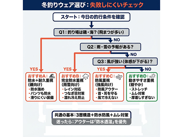 冬釣りの防寒ウェアの選び方|3層構造で寒さ対策